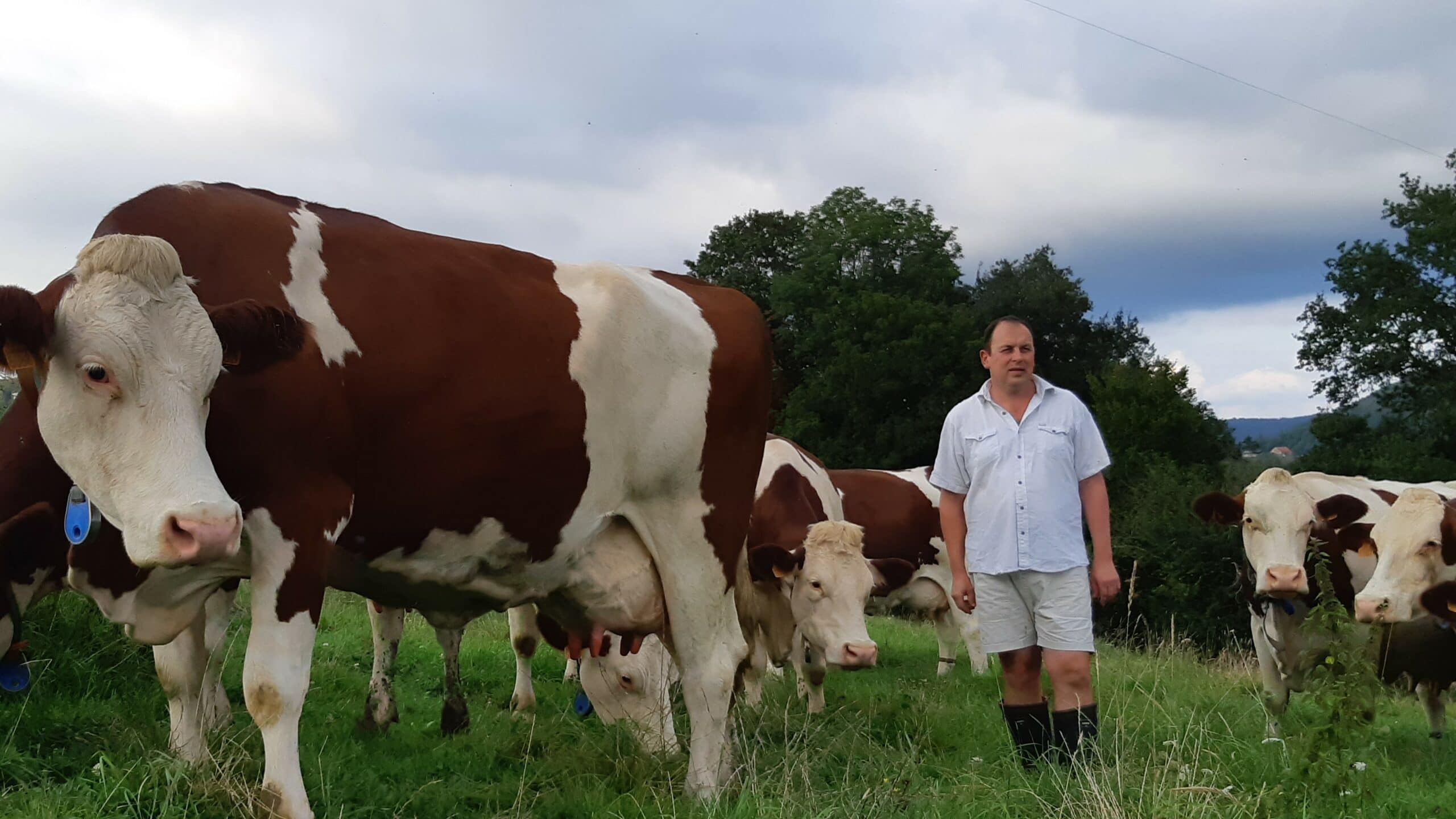 Vincent est un producteur de lait à Morbier et Comté dans le Doubs sur le village de Cléron. Il conduit son troupeau de 70 vaches Montbéliardes sur 150 ha de prairies. Il possède également 10ha d’Orge et de Maïs pour son autonomie en céréales, complément énergétique indispensable aux vaches laitières. Vincent est un passionné de Comice agricole !
