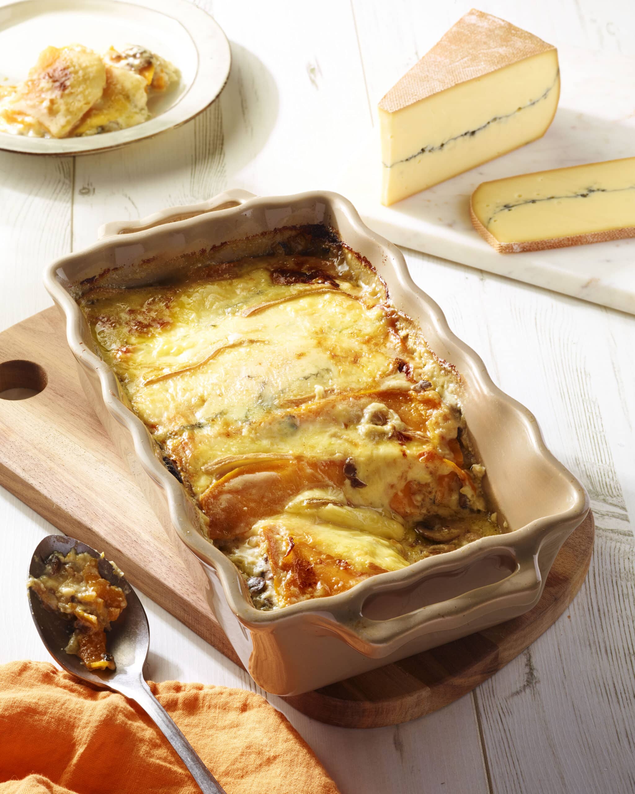 Monter les lasagnes en alternant béchamel, butternut et farce de champignons.
