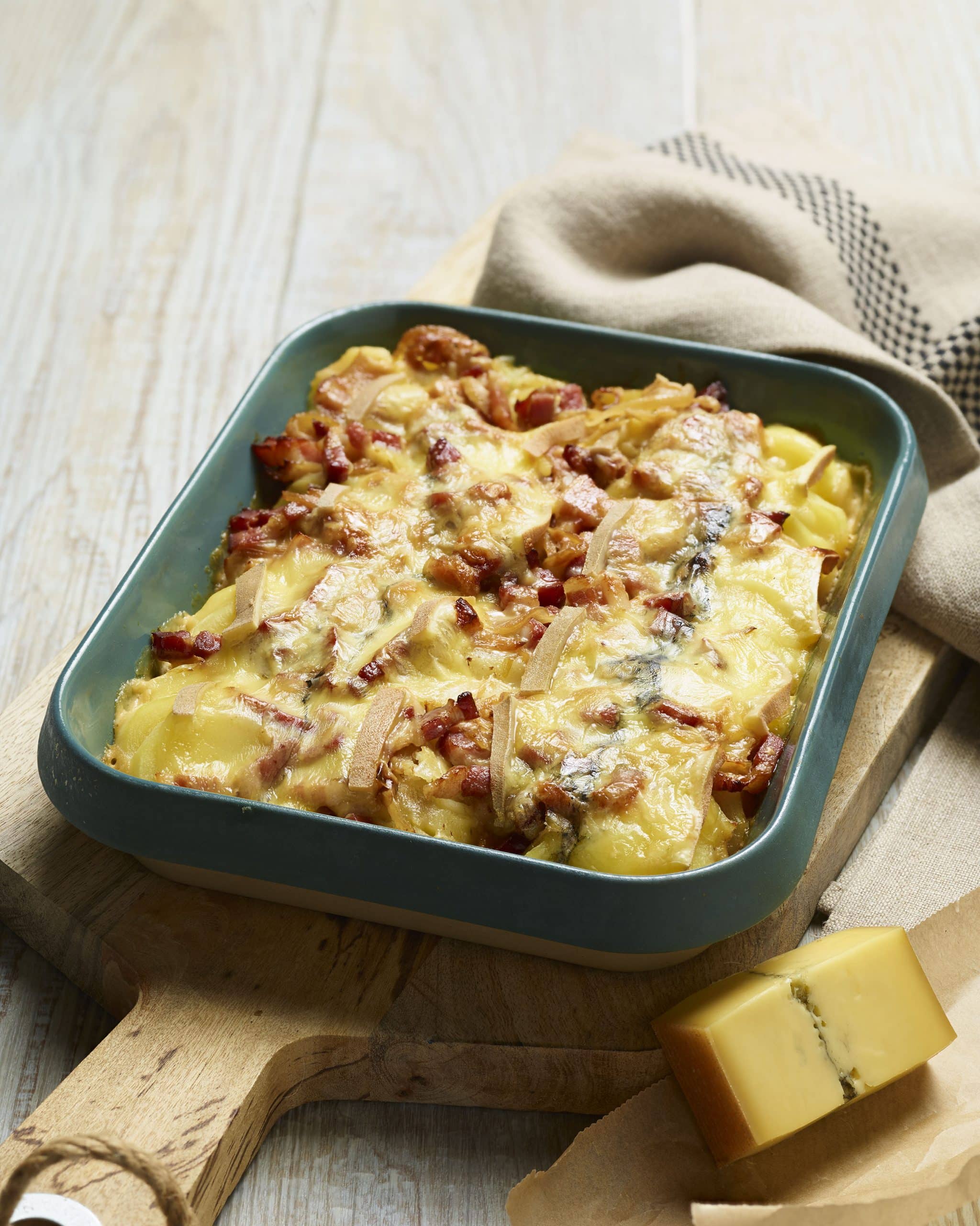Envie de Jura à l’état pur ? Remplacez les lardons par de fines tranches de saucisse de Morteau, mariage parfait avec le Morbier AOP fondu !